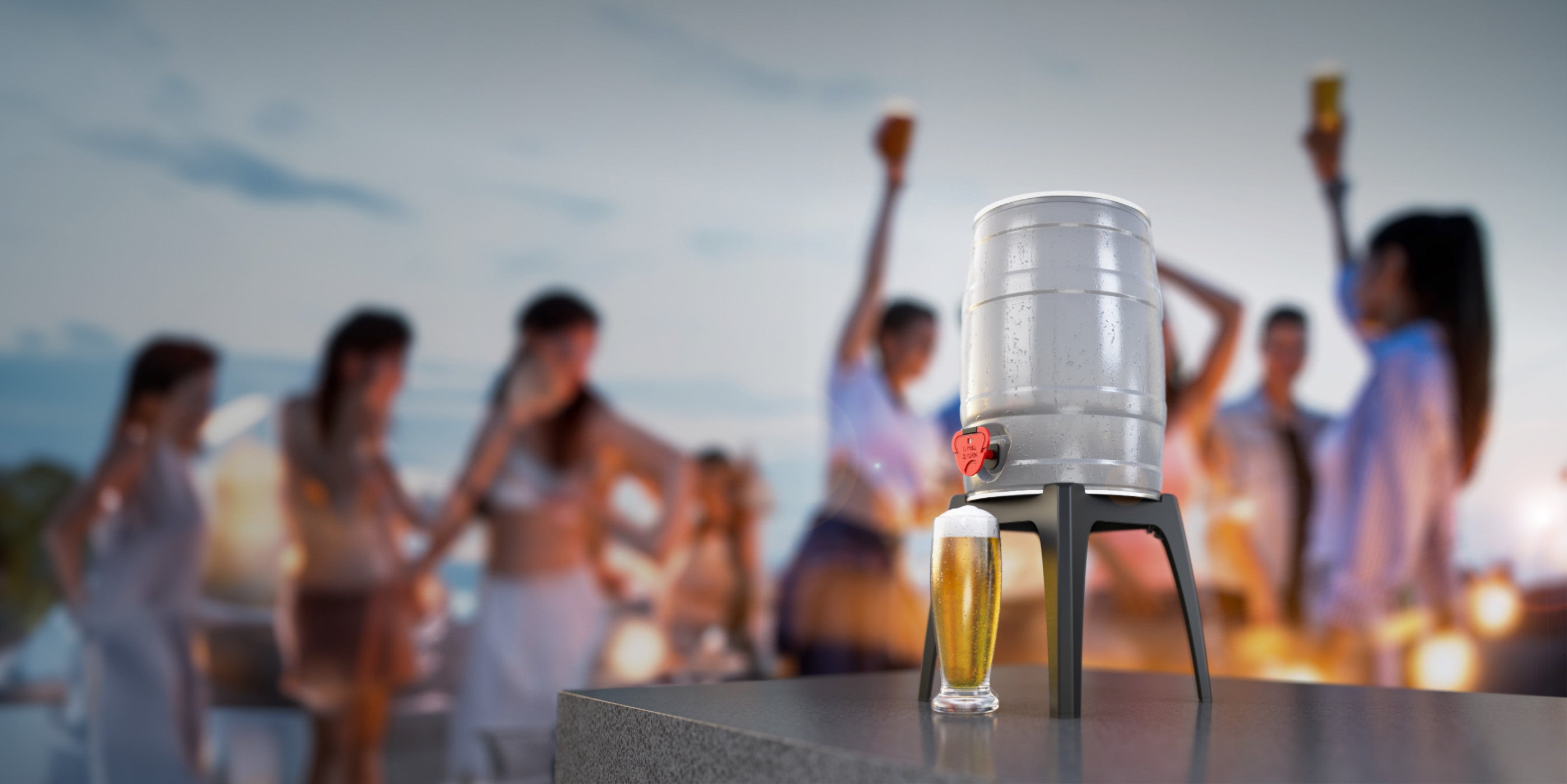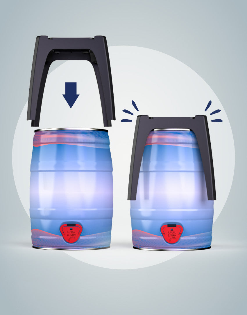 Zum handlichen Tragen eines Partyfasses einfach das Keg2Go auf das Fass setzen und unten einrasten.
