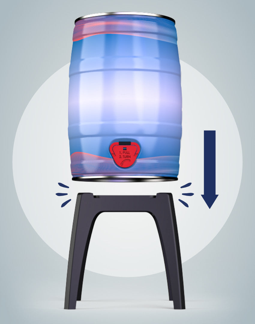 Zum Aufstellen und Zapfen setzt du das 5L-Partyfass einfach auf dein Keg2Go und rastest es oben ein.